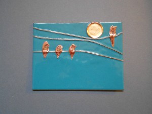 I work with a variety of materials, primarily sterling silver, fine silver and brass. Techniques I use include enameling, casting, hand fabriction.