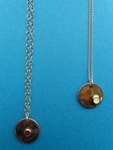 I work with a variety of materials, primarily sterling silver, fine silver and brass. Techniques I use include enameling, casting, hand fabriction.
