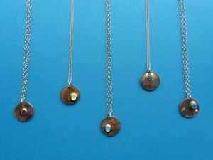 I work with a variety of materials, primarily sterling silver, fine silver and brass. Techniques I use include enameling, casting, hand fabriction.