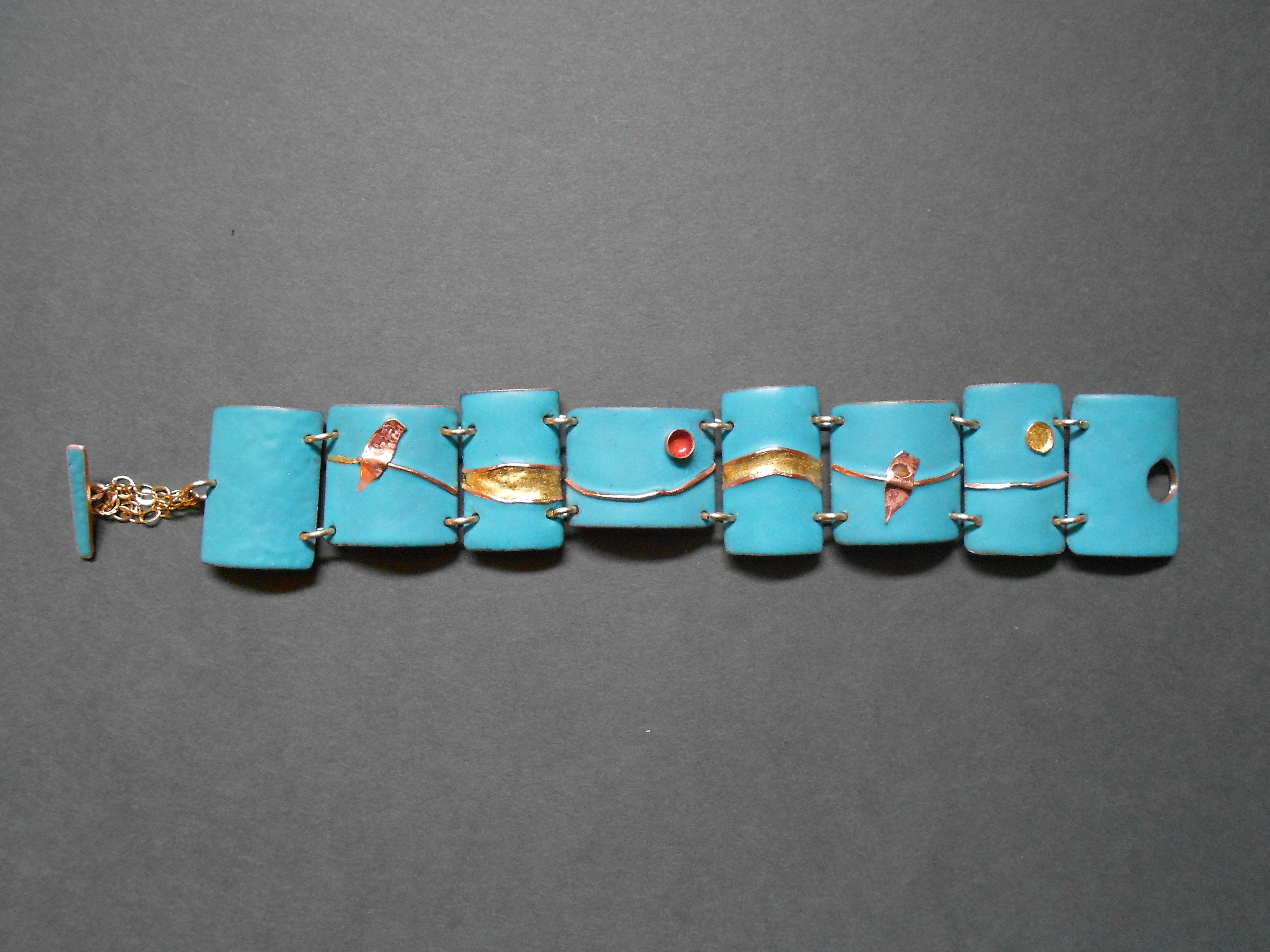 I work with a variety of materials, primarily sterling silver, fine silver and brass. Techniques I use include enameling, casting, hand fabriction.