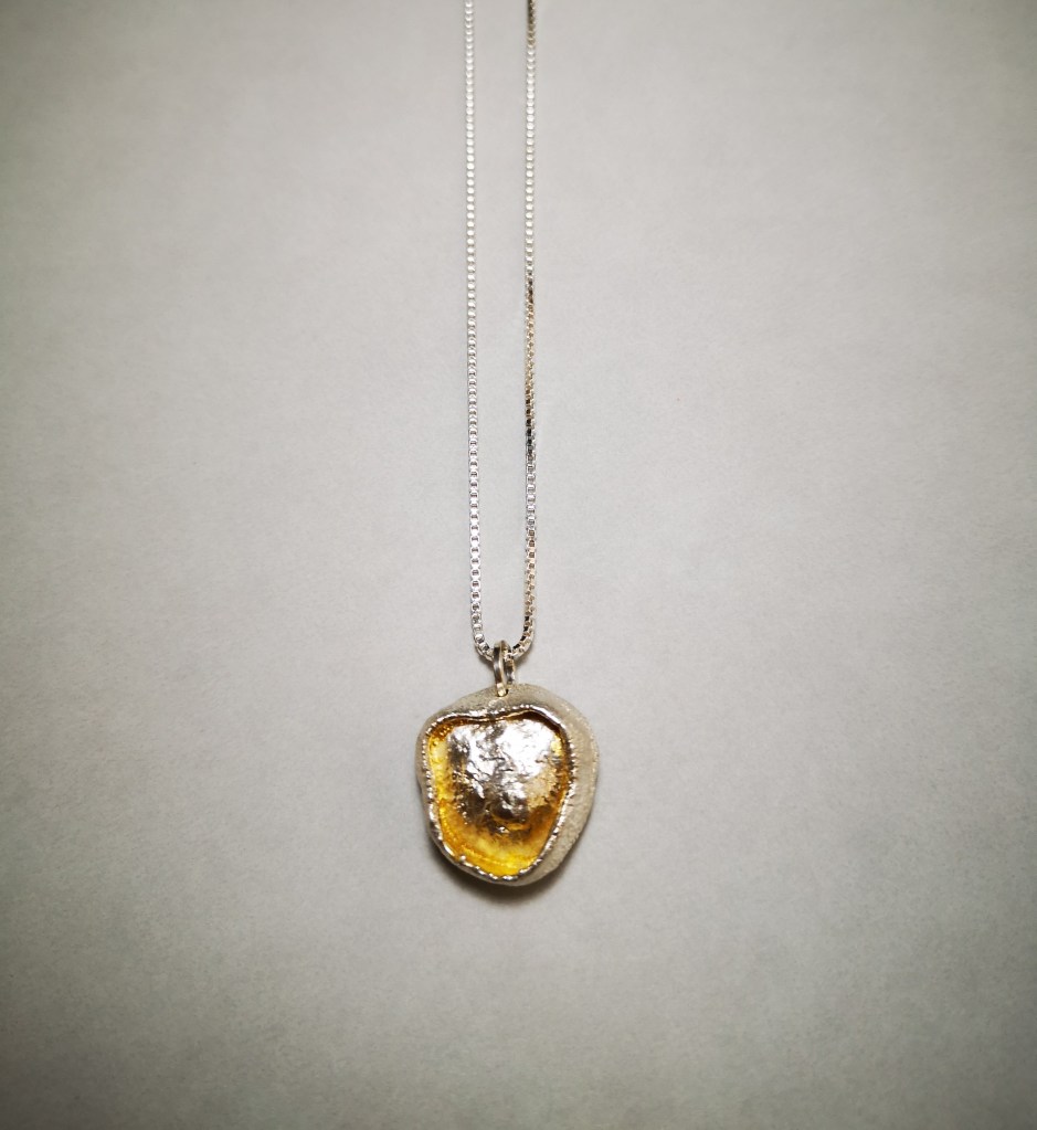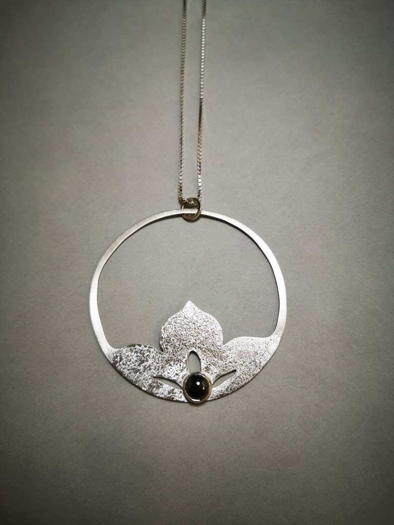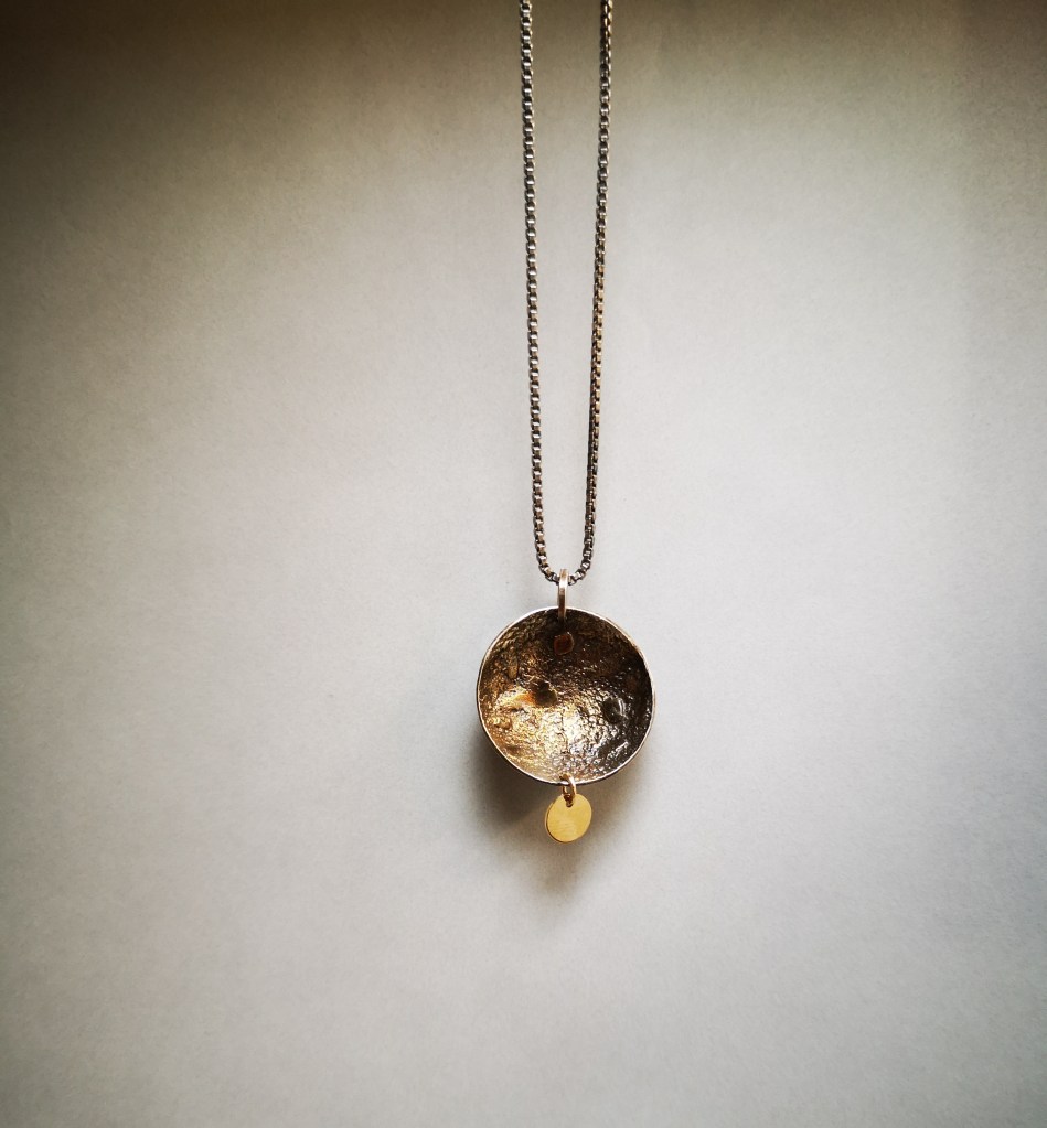 I work with a variety of materials, primarily sterling silver, fine silver and brass. Techniques I use include enameling, casting, hand fabriction.