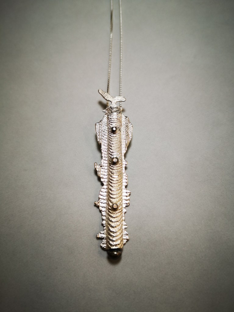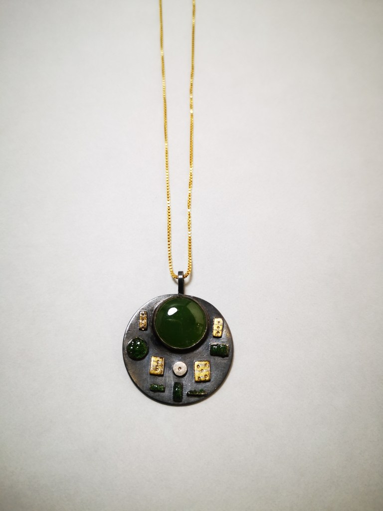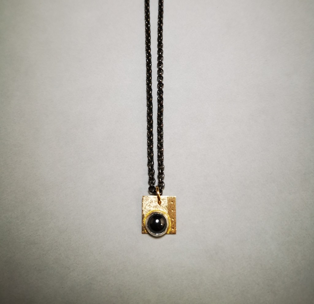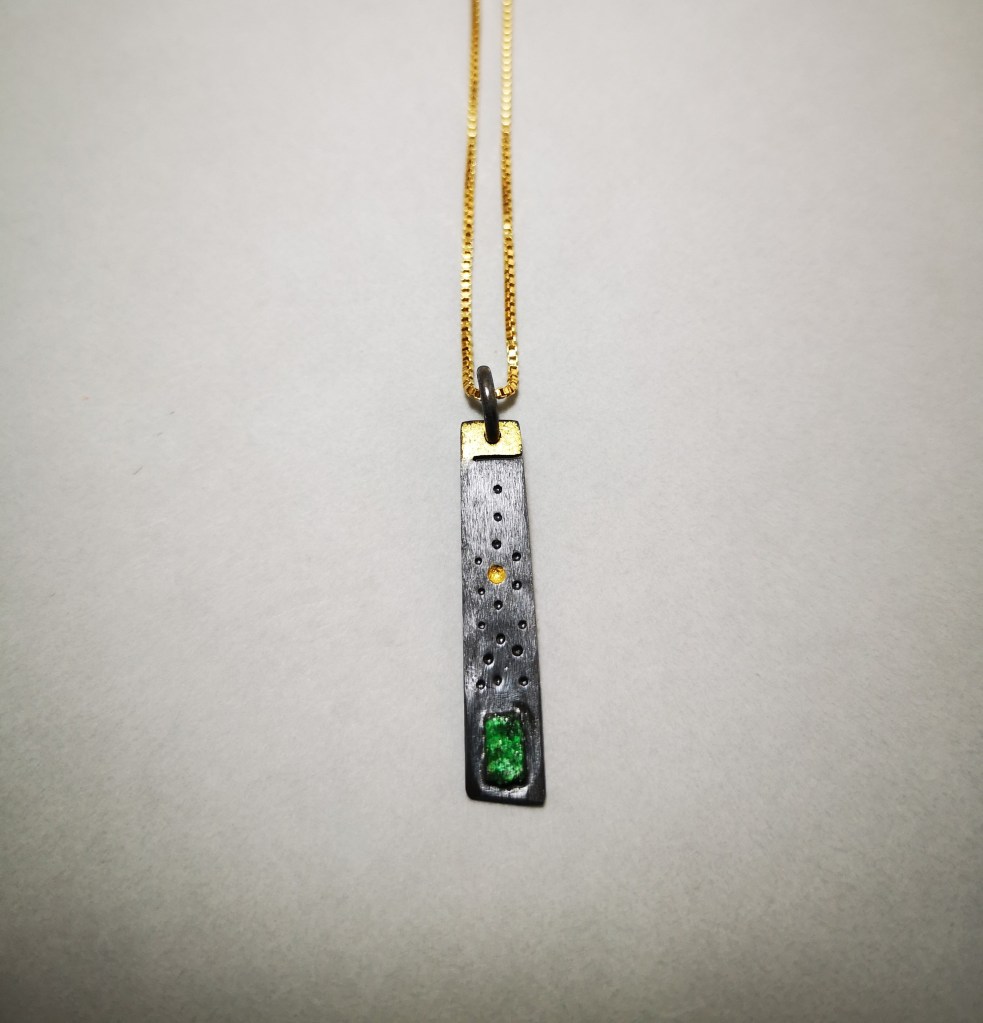 I work with a variety of materials, primarily sterling silver, fine silver and brass. Techniques I use include enameling, casting, hand fabriction.
